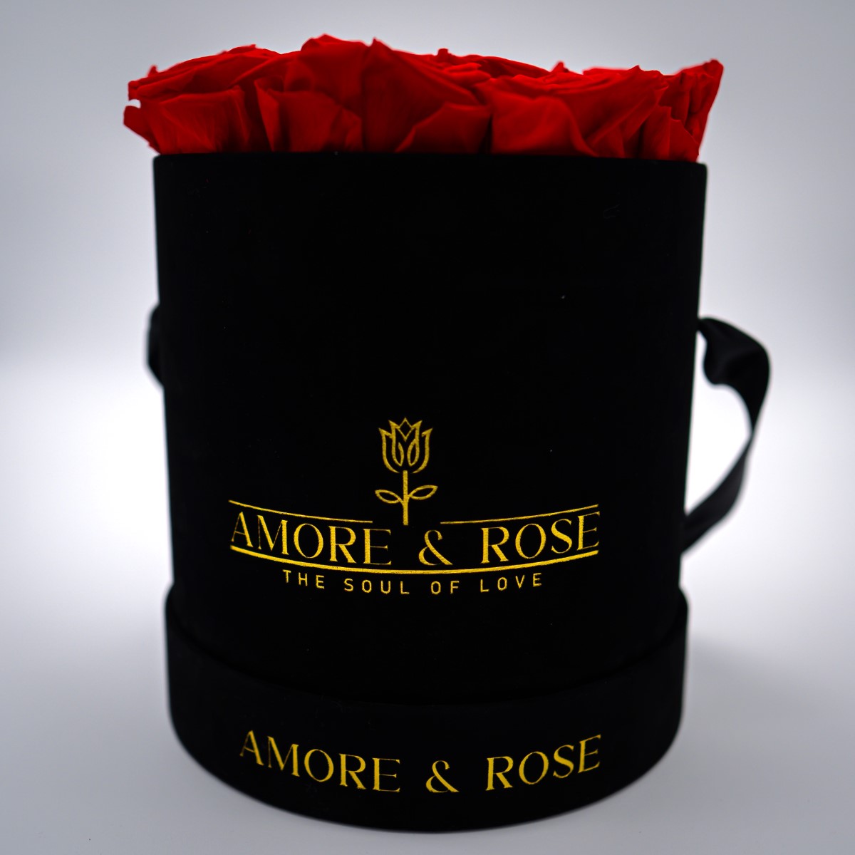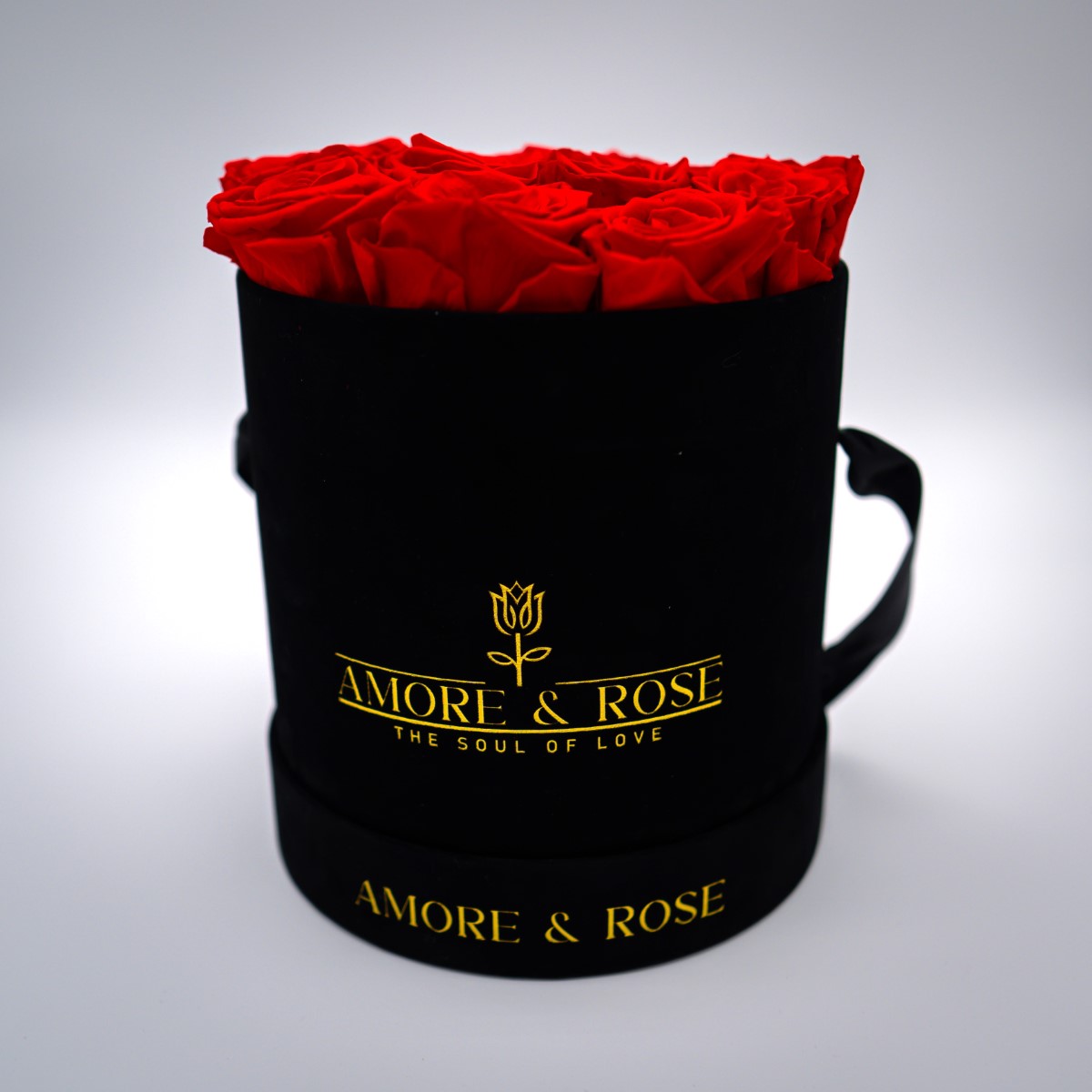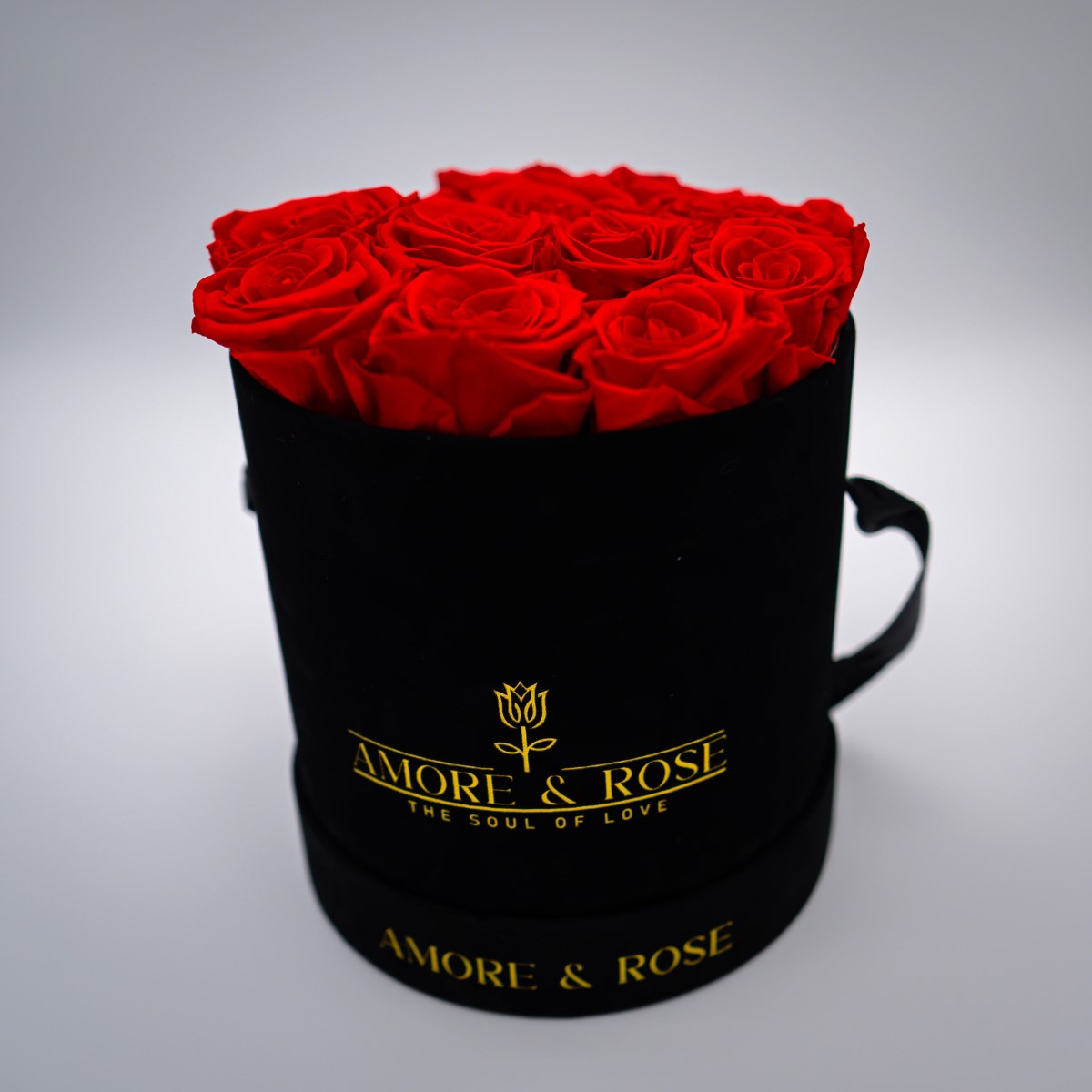Electra Velvet – Round Box x 12 Natural Red Roses